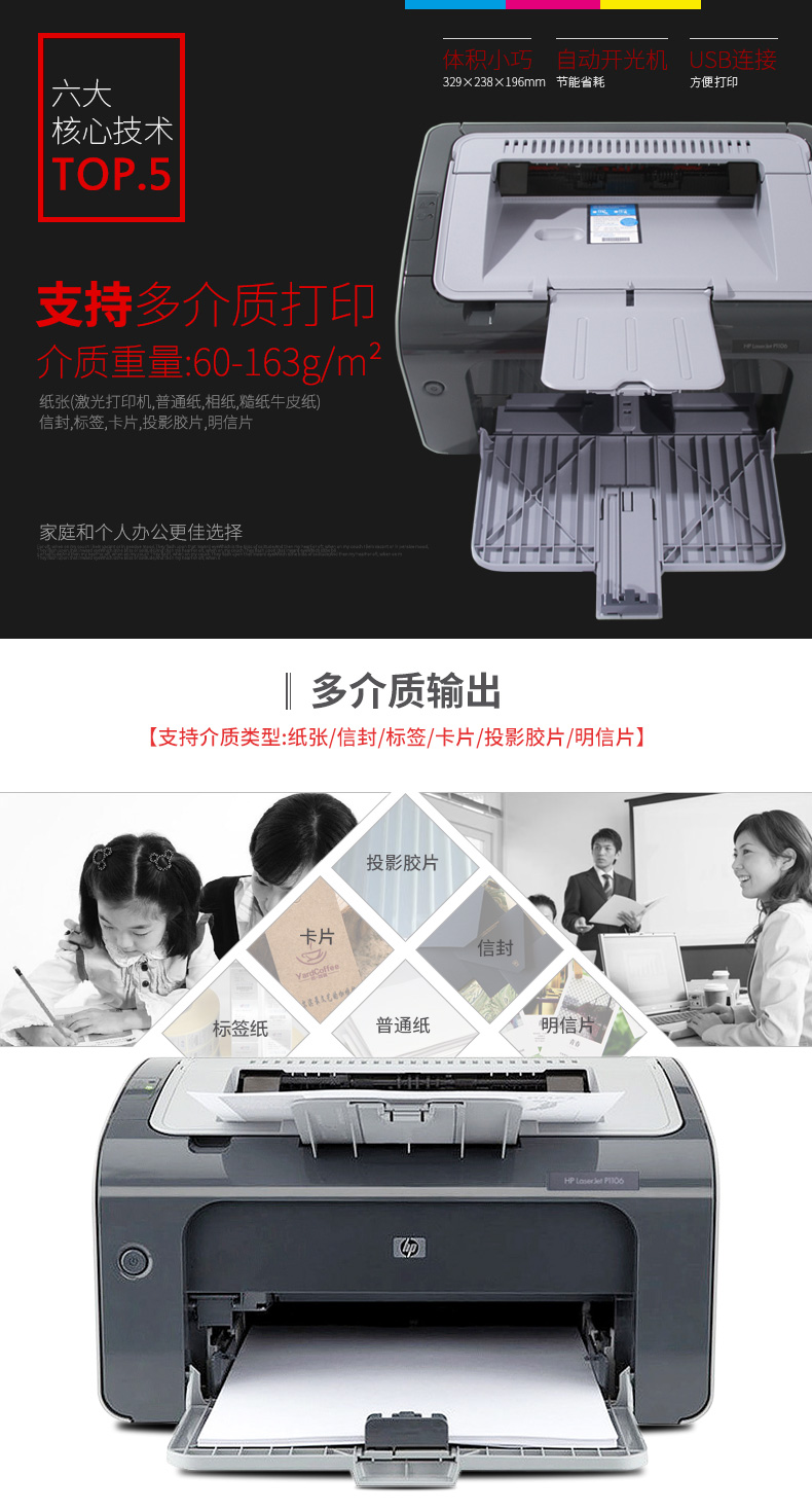 描述:紙張(激光打印紙,普通紙,相紙,糙紙,牛皮紙),信封,標(biāo)簽,卡片,投影膠片,明信片/介質(zhì)尺寸 A4,A5,A6,B5,明信片,信封(C5,DL,B5) 150頁進(jìn)紙盒:147×211-216×356mm